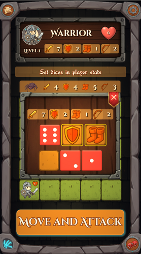Roll the dice and assign them to your Attack, Defense, and Movement stats for this turn.
